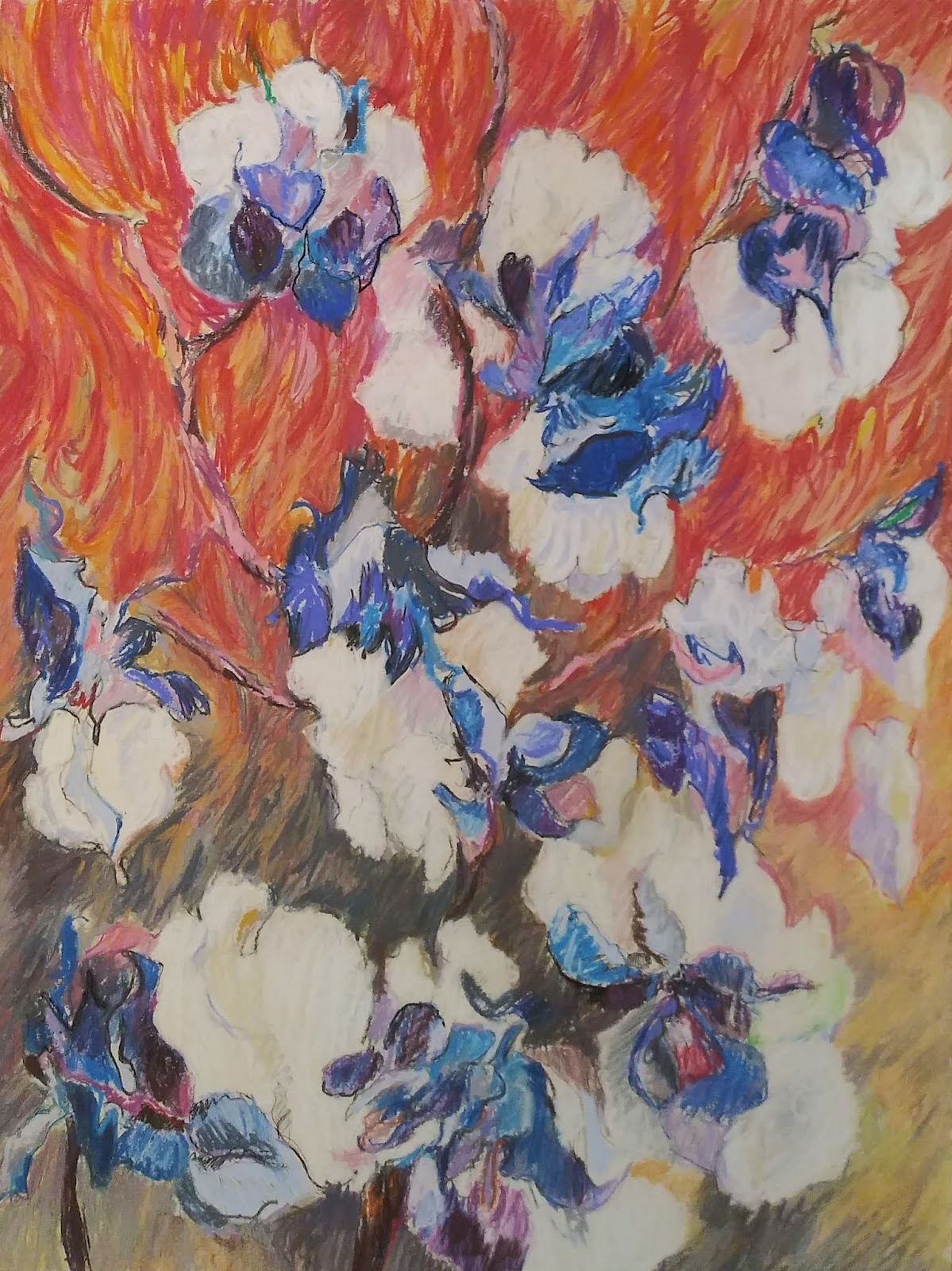 | Cotton Fire, 2020, pastel on paper, 24 x 18 in., $1,300 |